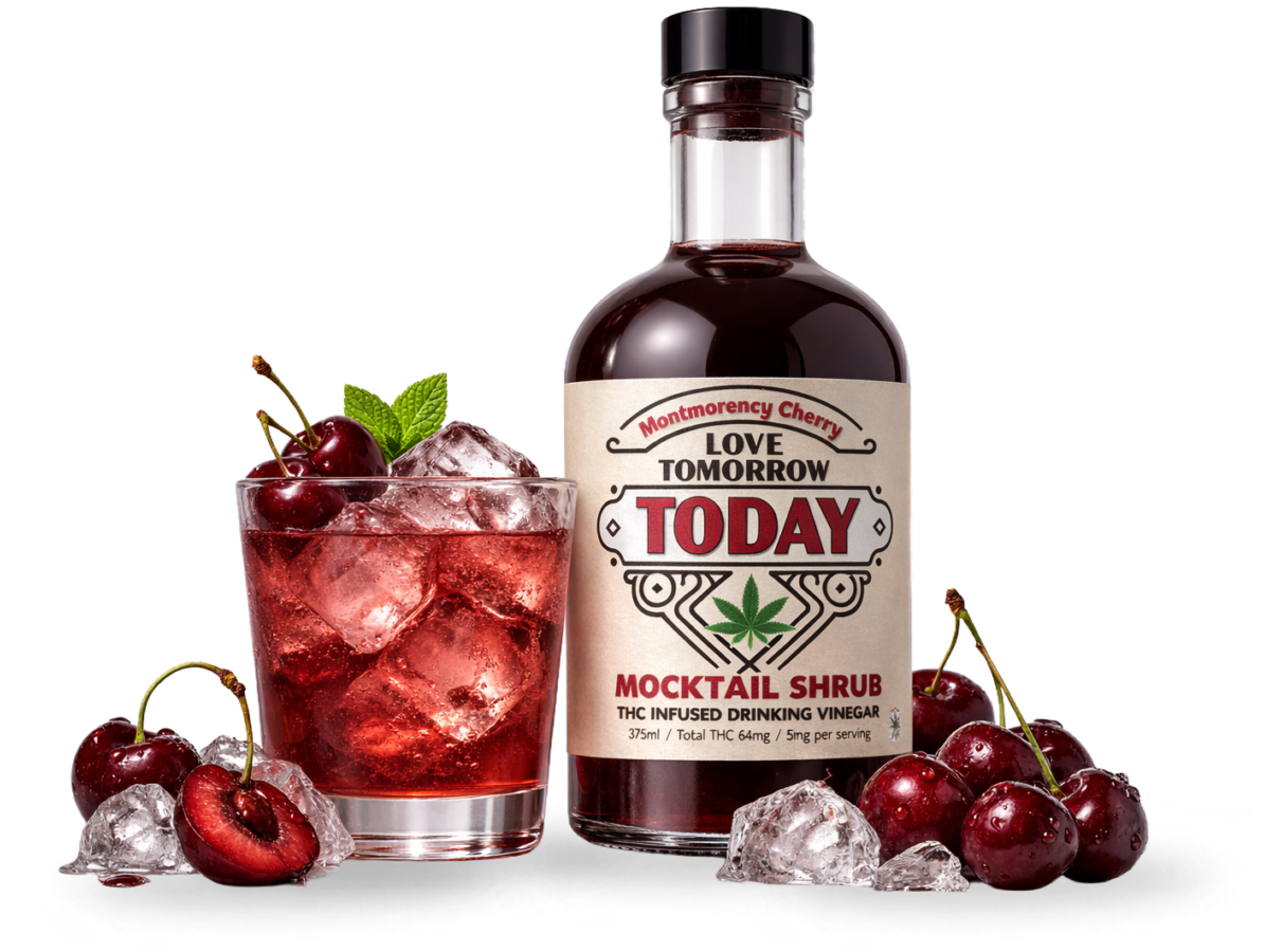 A bright, tangy drinking vinegar crafted from Michigan grown Montmorency cherries, organic apple cider vinegar, and real cane sugar, infused with hemp‐derived Delta‐9 THC for a smooth, social buzz without alcohol.